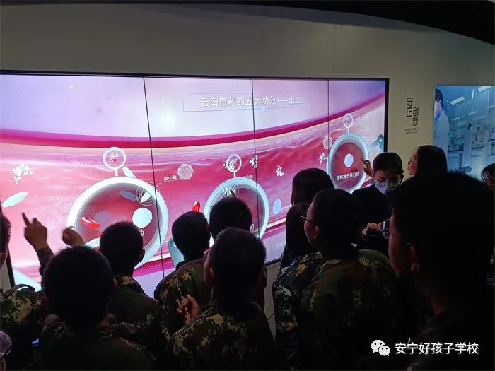 研學(xué)第二站——云南白藥體驗(yàn)館,通過觀看視頻體會(huì)云南白藥在立足當(dāng)下、展望未來中,如何守護(hù)生命與健康。并通過親身感受,體驗(yàn)高科技、智能化在日常生活中帶來的便捷、神奇與魅力。