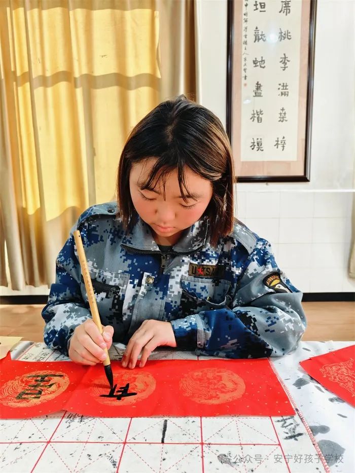 在窗明幾凈的多功能室里,翰墨飄香,福氣滿堂,孩子們徜徉其中,用心地選聯(lián)句、飽蘸濃墨、潤(rùn)圓筆鋒、提筆揮毫。經(jīng)過(guò)2個(gè)多小時(shí)的奮筆疾書,孩子們都完成了屬于自己的春聯(lián)作品!按号R大地花開(kāi)早,福滿人間喜事多”“日麗神州彩鳳舞,霞飛華夏巨龍騰”“天地人四海同春,松竹梅三陽(yáng)開(kāi)泰”“一帆風(fēng)順年年好,萬(wàn)事如意步步高”等滿載祝福的春聯(lián)躍然紙上。隸書的有折無(wú)轉(zhuǎn)、楷書的齊而不拘、草書的筆畫連綿、行書的悠游流轉(zhuǎn)......大家筆走龍蛇,作品行云流水,都肆意地將心底最美好的祝愿化作一幅幅寓意吉祥的作品,在漢字的線條美與結(jié)構(gòu)美之中傳遞著濃郁的辭舊迎新、接福納祥的新春祝福。