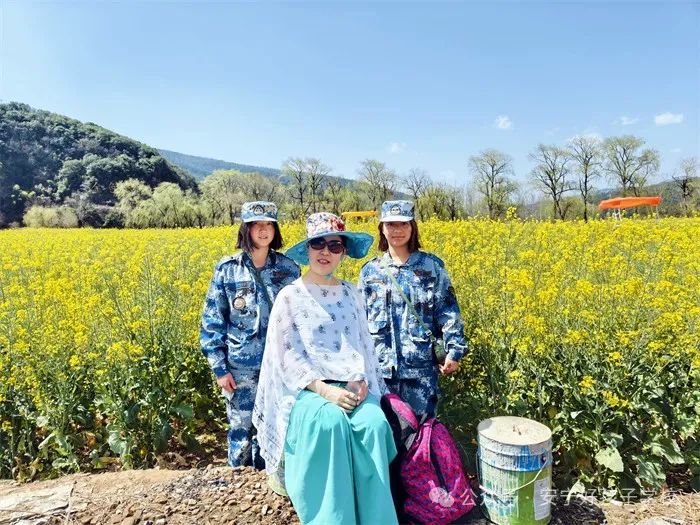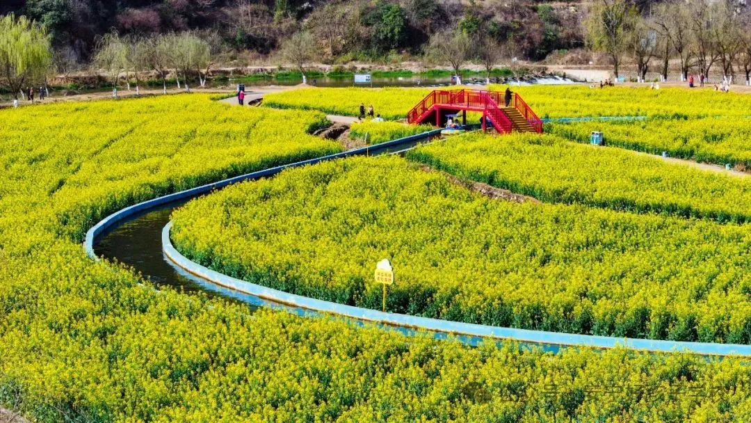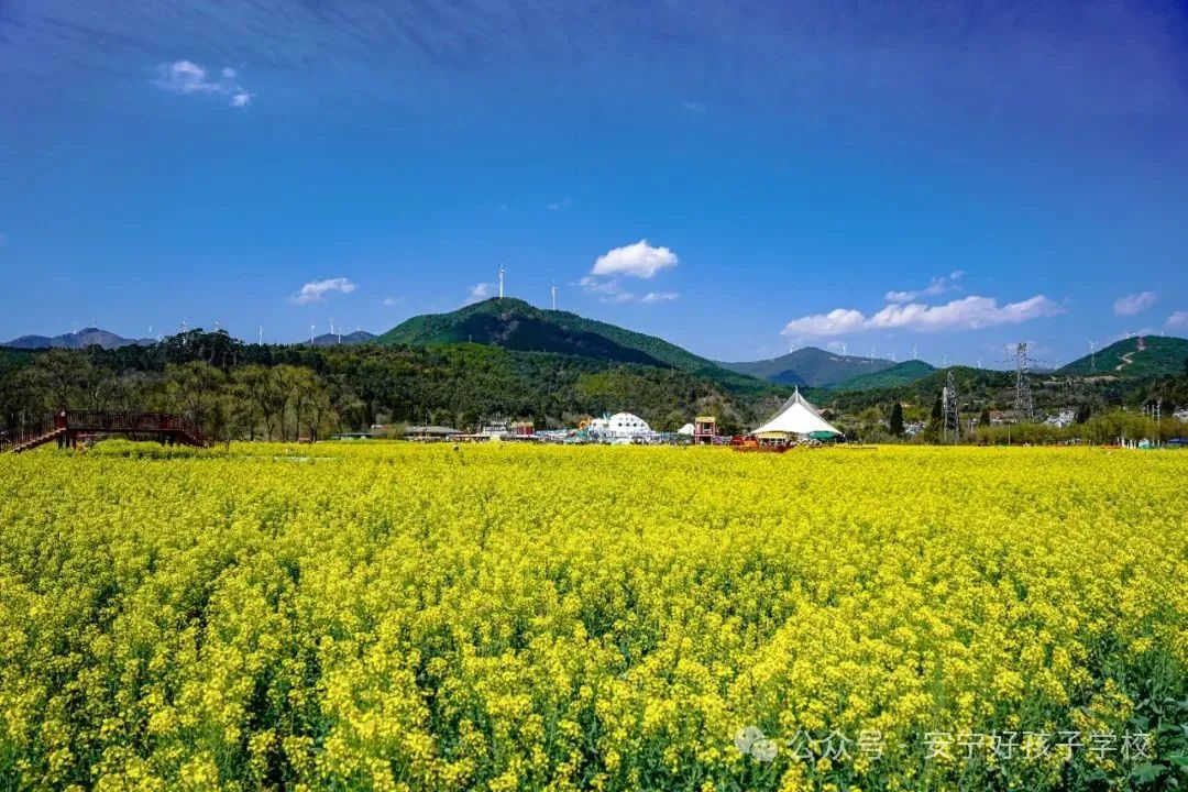 “油菜花開春意濃,滿目金黃惹人醉!毖巯拢怯筒嘶ㄊ⒒ㄆ,一朵朵、一簇簇的油菜花,競(jìng)相怒放,金黃色的花海猶如地毯般覆蓋著田野,美如大自然的油畫,煞是惹人喜愛!讓人不禁想去尋芳踏青、賞花觀景;ê=鹄擞縿(dòng),花香襲人,沁人心脾。伴著泥土的芬芳,徜徉在蜜蜂、蝴蝶載歌載舞的花田,如同在斑斕繽紛、流金溢彩的童話世界遨游。大家情不自禁閉上眼細(xì)數(shù)春天的腳步,爭(zhēng)先恐后在金黃鋪就的美景里,搶著上鏡,和春天撞個(gè)滿懷。放眼望去,花海與藍(lán)天白云、遠(yuǎn)山田野、村莊河流相映成趣,勾勒出一幅田園春景圖。