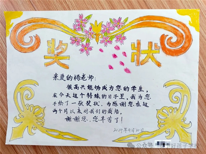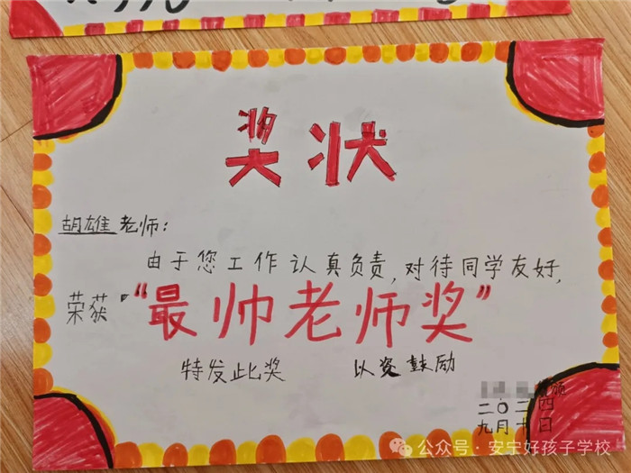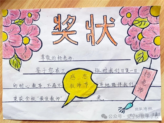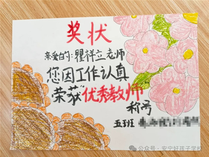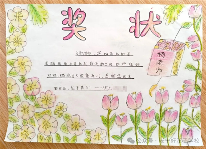 一朝沐杏雨,一生念師恩。孩子們?cè)趧?chuàng)意獎(jiǎng)狀制作時(shí),各個(gè)認(rèn)真、細(xì)致、投入,每一筆都勾勒出了他們心中既親切又威嚴(yán)的老師形象。那一句句風(fēng)趣幽默飽含情意的話語(yǔ),是老師們憑實(shí)力和魅力圈粉的結(jié)果。對(duì)老師來(lái)說(shuō),這一張張獎(jiǎng)狀,就是最好的禮物和最大的褒獎(jiǎng),亦是前行最大的動(dòng)力!一路走來(lái),學(xué)校全體教師以盡職盡責(zé)詮釋責(zé)任,以拼搏奮斗書寫擔(dān)當(dāng),以敬業(yè)奉獻(xiàn)彰顯情懷。