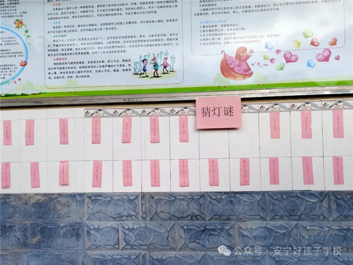 老師們精心挑選了百余條燈謎,妙趣橫生的謎面涵蓋成語典故、民俗文化、地理知識、科普知識等,既有娛樂性,又具知識性。孩子紛紛“組團(tuán)”猜謎,時而苦思冥想,時而三三兩兩一起竊竊討論,你一言、我一語地互相推敲商議,一條條謎底被紛紛猜中,大家喜笑顏開,興高采烈地爭相領(lǐng)取小禮品……
