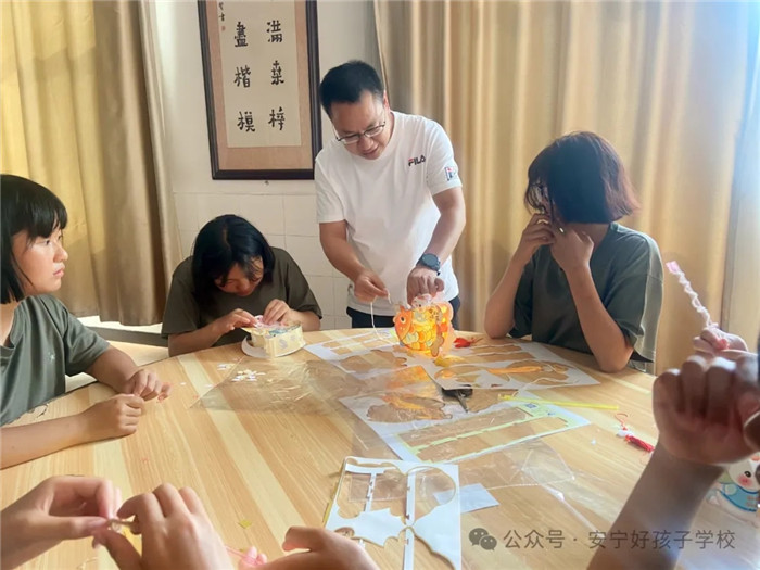 手工燈籠DIY環(huán)節(jié),老師向同學(xué)們發(fā)放制作手工花燈的材料,并為大家講解了制作流程及方法。孩子們熱情高漲,迫不及待地打開材料包,按照講解的步驟動起手來。粘貼、拼接、組裝、定型、裝飾,每一個環(huán)節(jié)都一絲不茍。不一會兒,一個個漂亮的花燈相繼出爐,看著自己勞動的成果,大家都愛不釋手,紛紛舉著花燈合影留念。