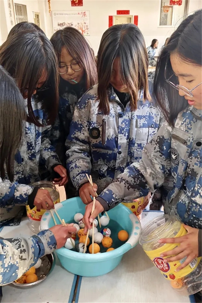 臨近中午,熱氣騰騰的元宵(湯圓)端上了桌,師生們圍坐在一起,品嘗著美味的元宵,感受著節(jié)日的溫暖。