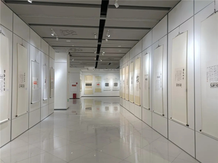 本次展覽,由安寧市書法家協(xié)會(huì)名譽(yù)主席李文潔、安寧市書法家協(xié)會(huì)主席李艷東(我校書法教師)兩位書法家將各自收藏多年的金石拓片進(jìn)行了題跋創(chuàng)作,共遴選出120余幅金石題跋珍品進(jìn)行展出,形式多樣,涉及面廣,涵蓋了經(jīng)典碑帖、唐人墓志、秦磚漢瓦、銅鏡銘文、殘石畫像等門類。書法教師李艷東現(xiàn)場(chǎng)解析展品中書體演變脈絡(luò),結(jié)合《唐崔賁墓志銘》《裴敬墓志》等經(jīng)典碑帖,闡釋“透過(guò)刀鋒看筆鋒”的臨摹要義。